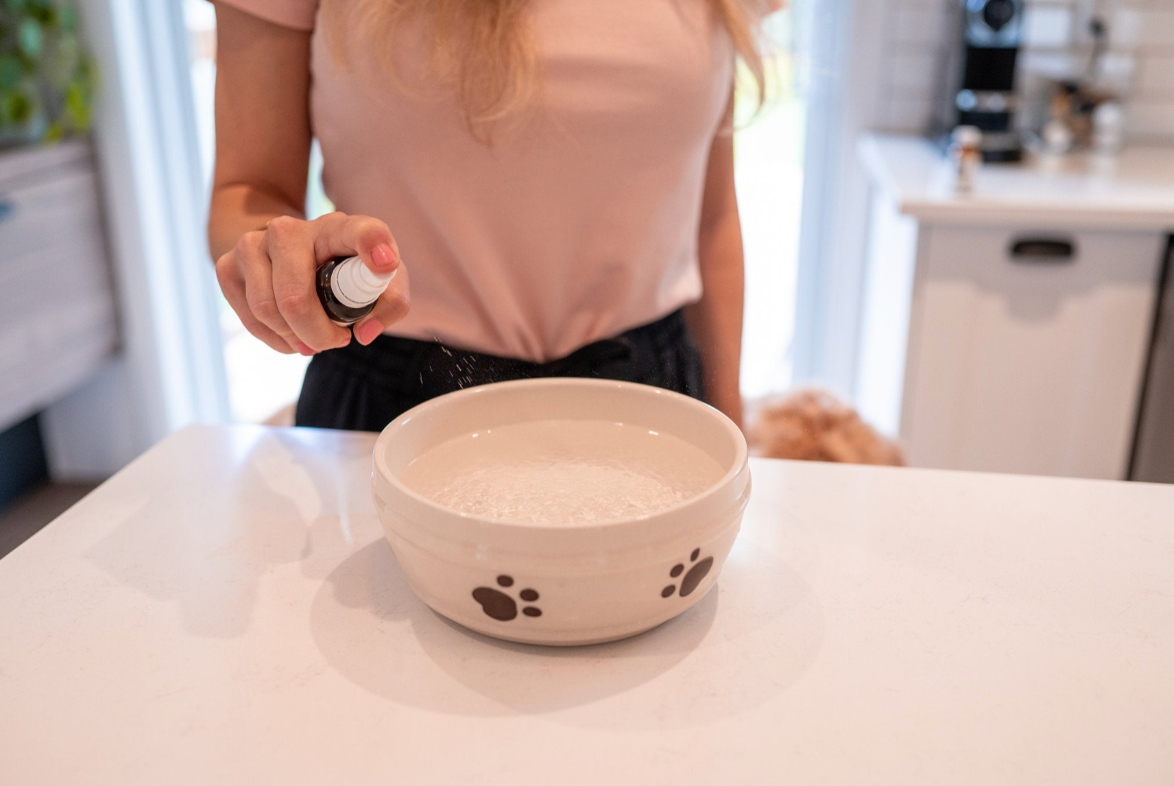 - Espere al menos un minuto para que el alcohol se evapore por completo (idealmente más, ya que el agua aún estará caliente para su mascota).