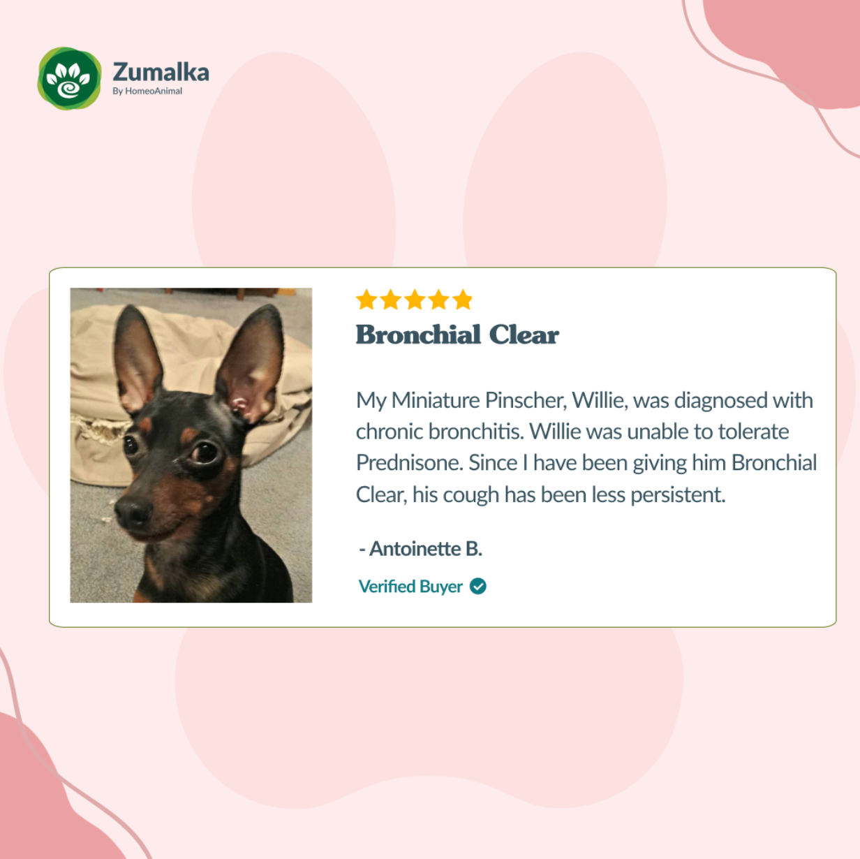 Is it time to address your pet’s persistent cough? You’re in the right place! BRONCHIAL CLEAR is a natural product specifically formulated for your pet’s respiratory needs. Like all of our remedies, it is perfect for both cats and dogs!