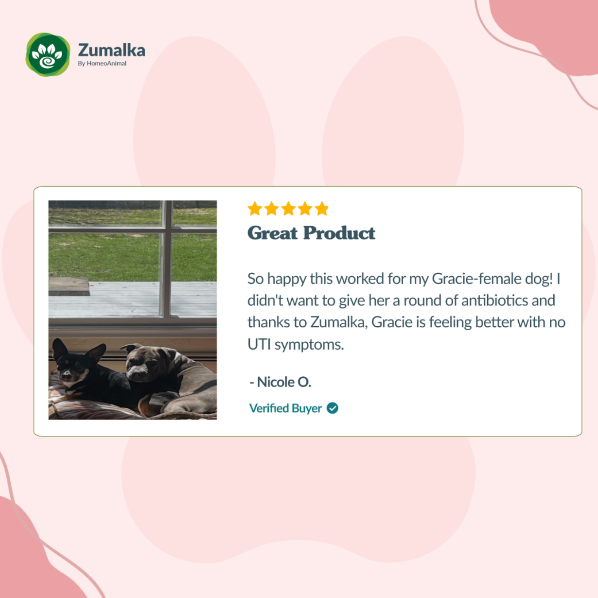 The URINARY TRACT SUPPORT remedy is a homeopathic product that was created to be an effective answer to your pet’s urinary system and kidney issues. It can even help dissolve and clear your pet's stones or crystals in the kidneys if any!